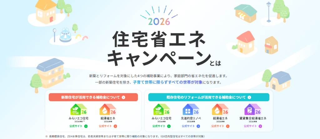 住宅省エネ2026キャンペーンは、国が実施する住宅の省エネ化を目的とした補助金制度です。